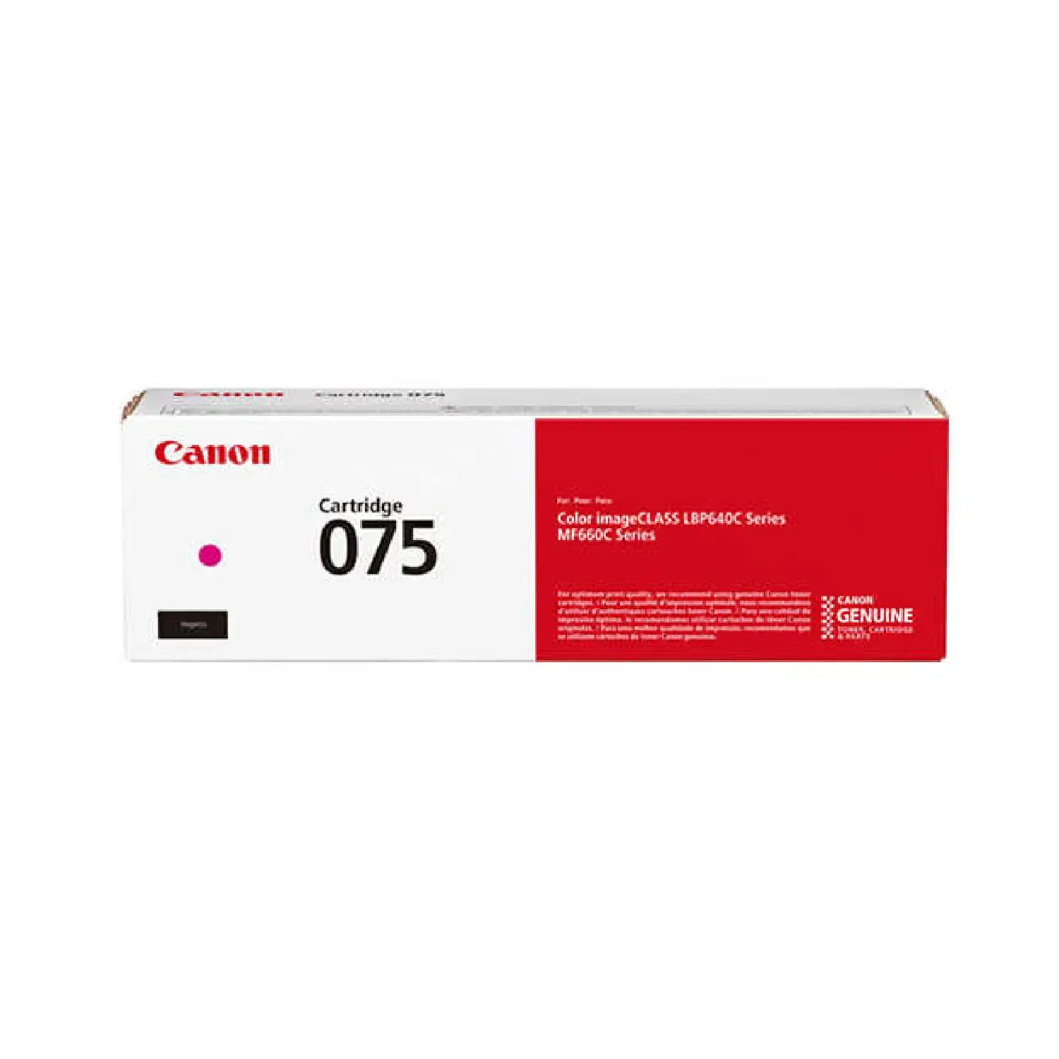 Canon CRG-075 6363C002 kırmızı orijinal toner, Canon tarafından geliştirilmiş olup yazıcı ile tam uyumlu çalışarak yüksek kalite standartlarında baskı performansı sunar. Canlı ve net magenta (kırmızı) renkleriyle profesyonel belgeler ve görseller elde etmenizi sağlar.